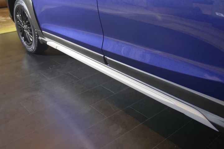 Melihat lebih dekat di sisi menunjukkan bahawa pelapis hitam yang hadir di bahagian depan memanjang ke profil sampingan ke arah belakang, dengan kemasukan warna perak di sepanjang kawasan skirt.