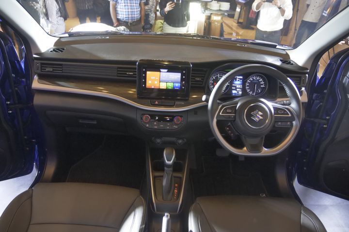 Pada bahagian dalam, anda akan melihat susun atur papan pemuka XL6 seperti serupa dengan Ertiga. Walau bagaimanapun, kombo warna hitam telah digantikan dengan tema hitam-sportier yang lebih sporty.