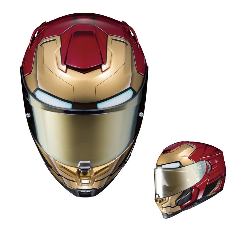Helmet Iron Man pula berasaskan model RPHA 70 ST yang turut mempunyai cermin mata hitam. Visor berwarna emas dan elemen metalik membuatkan helmet berharga USD609.99 (RM2,484) ini kelihatan tidak jauh berbeza dengan helmet Iron Man yang sebenar.