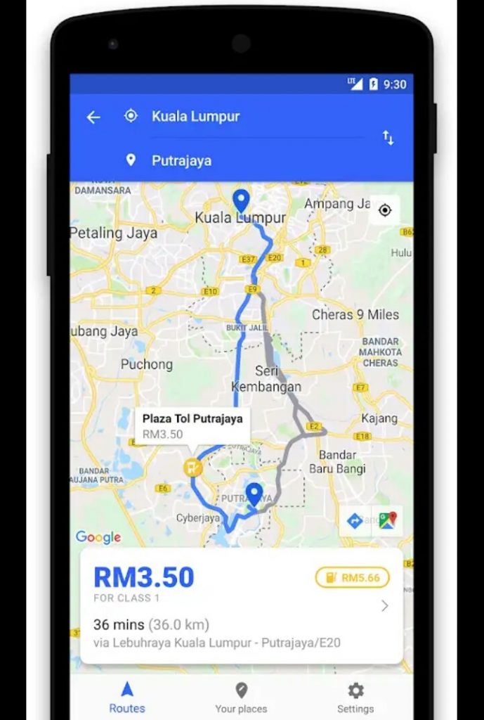 Untuk kos tol, anda boleh pilih beberapa laluan (jika ada alternatif) untuk ke destinasi anda seperti aplikasi navigasi lain. Di sini, ia akan paparkan kos tol dikenakan untuk setiap laluan itu.