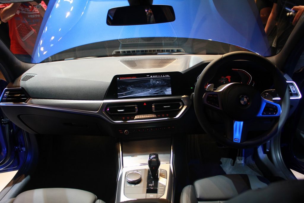 Ruang kabin BMW 330i M Sport ini diberikan stereng kulit M Sport dengan ciri pelbagai fungsi dan padel penukar gear. Terdapat juga pencahayaan suasana yang memfokuskan pengalaman pemanduan sport.