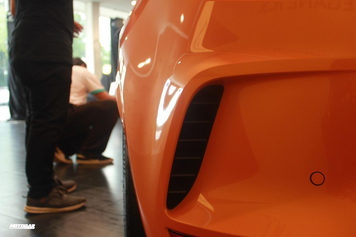 Bilah pada gril depan diambil dari rekaan sayap depan F1, dan terdapat pengekstrak udara di fender kiri dan kanan untuk mengeluarkan udara dari arca roda.