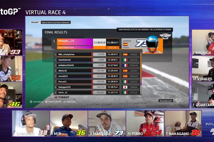 Berikut adalah keputusan perlumbaan MotoGP Virtual Race siri ke-4: