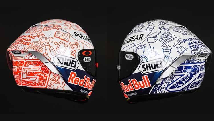 Kedua-dua topi keledar tersebut akan disertakan dengan slogan ‘Pushing Ahead Together‘ pada bahagian belakang, dan disertakan dengan gambar elemen perkara yang selalu dilakukan oleh Marc dan Alex Marquez sepanjang perintah lockdown.