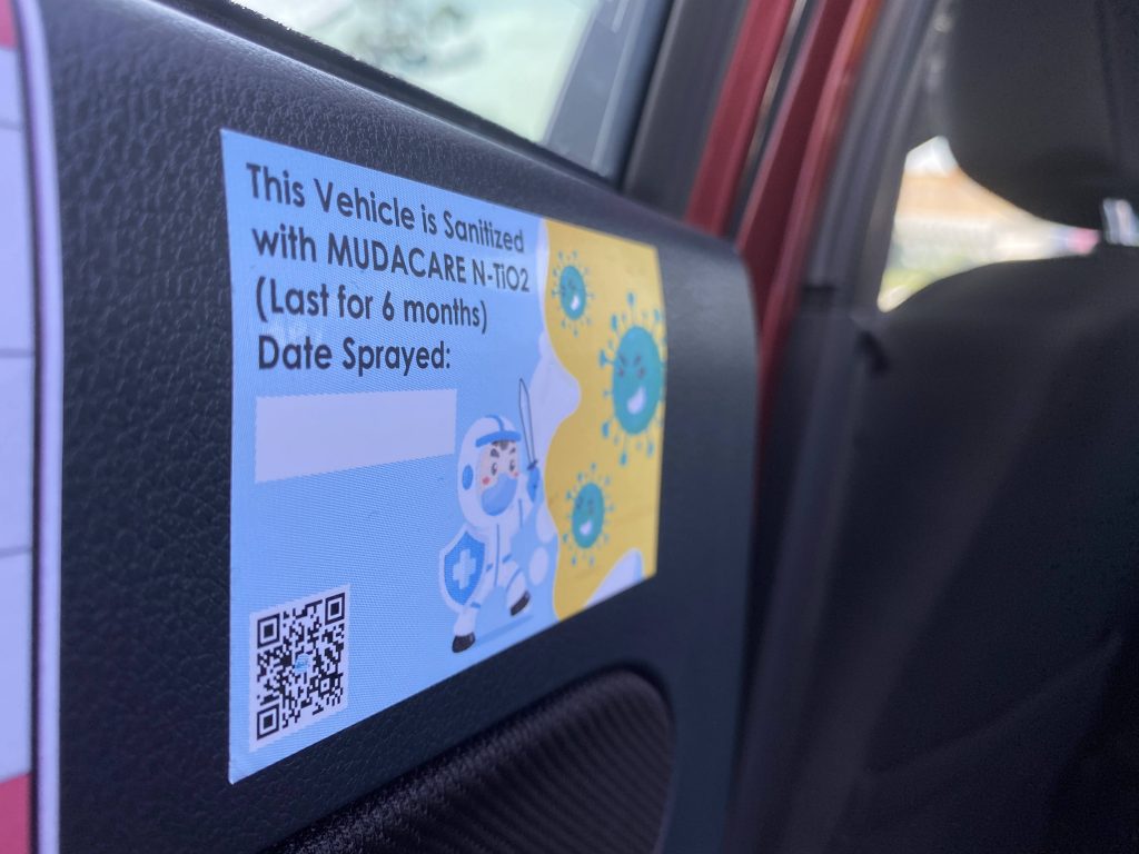 Bahan nyahkuman digunakan ialah cecair nanoscale berasaskan titanium dioksida (N-TiO2) yang dirumus untuk membunuh virus dan bakteria. Cecair ini disembur oleh staf terlatih MUDAcare pada teksi-teksi terpilih.