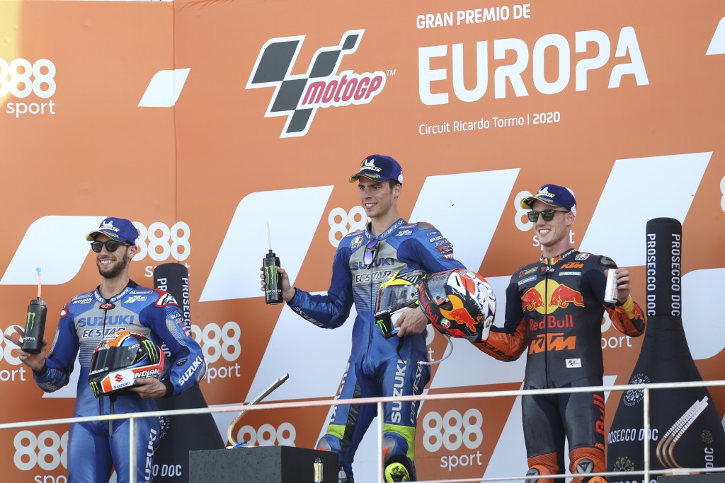 Pelumba pasukan Suzuki, Joan Mir mengatasi rakan sepasukannya iaitu Alex Rins untuk memperoleh kemenangan di Grand Prix Eropah.