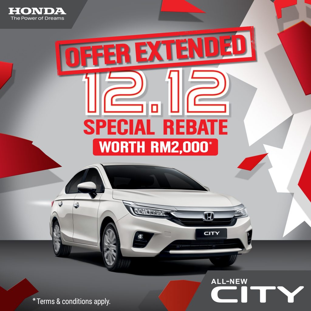 Pada 1 Disember lepas, Honda Malaysia mengumumkan kempen jualan istimewa 12.12 untuk Honda City yang menawarkan rebat RM2,000. Ia berlangsung dari 1 hingga 12 Disember (esok).