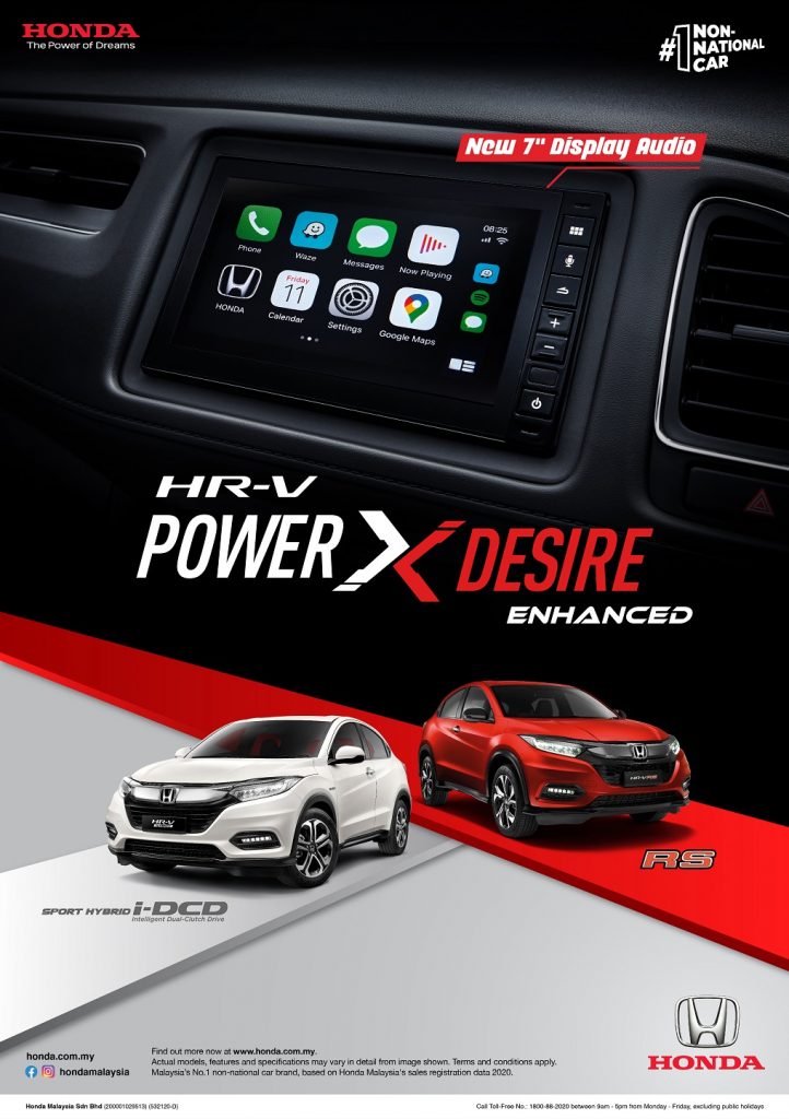 Honda Malaysia memperkenalkan kemaskini terkini untuk SUV segmen-B popular mereka, iaitu HR-V. Untuk tahun 2021, Honda HR-V diberikan warna baharu serta penambahan pada kelengkapan infotainmen.