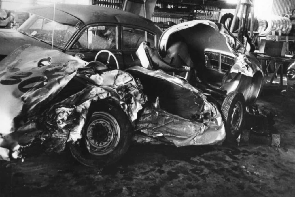 Kemalangan itu mengakibatkan 550 Spyder milik legenda Hollywood itu hancur, dan kotak gear ini merupakan satu-satunya komponen yang tinggal.
