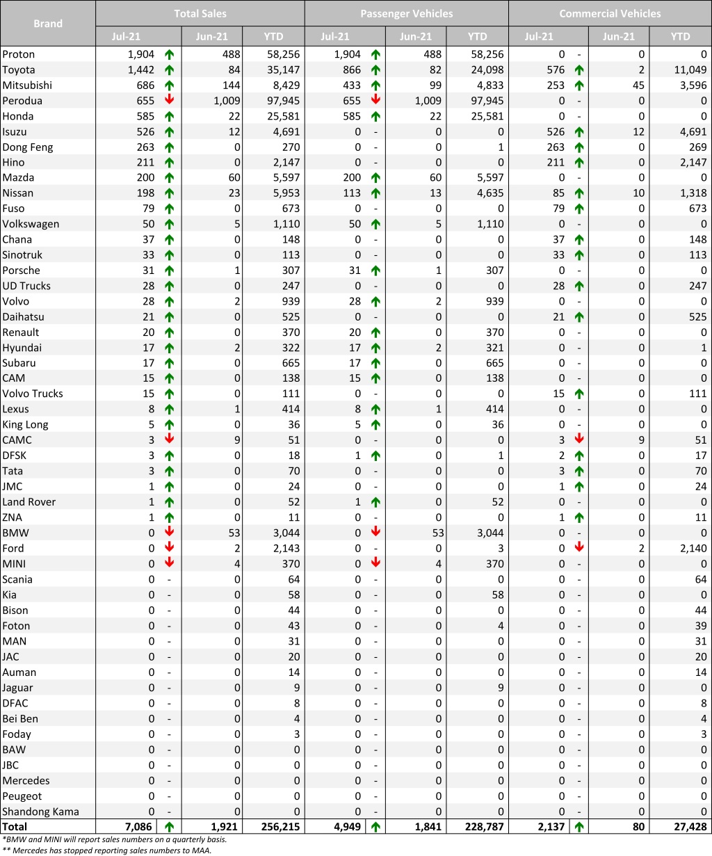 Bulan Julai mencatatkan rekod jualan sebanyak 7,086 unit kenderaan iaitu kenaikan 269 peratus berbanding Jun hanya 1,921 unit.