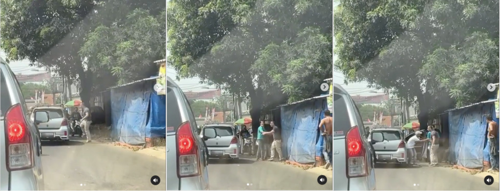 Tindakannya itu menyebabkan seorang lelaki marah dan menendang pintu Agya tersebut sebanyak dua kali hinggakan cermin sisi kereta itu tercabut melayang ke udara.