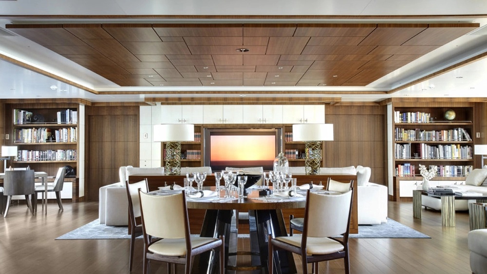Bahagian kabin yang mendapat sentuhan pereka Nuvolari & Lenard dan Molly Isaksen itu menawarkan empat dek dan ruang luas untuk menghiburkan selebriti papan atas. Kapal layar itu mampu memuatkan 20 tetamu dengan sembilan ruangan bilik serta 28 krew.