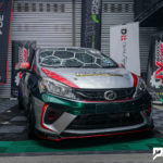 Myvi tersebut dilengkapi dengan tayar Yokohama Advan Neova AD08 R bersaiz 195/50R15. Sementara brek depan menggunakan angkup empat omboh dari Brembo yang dibekalkan NThree.