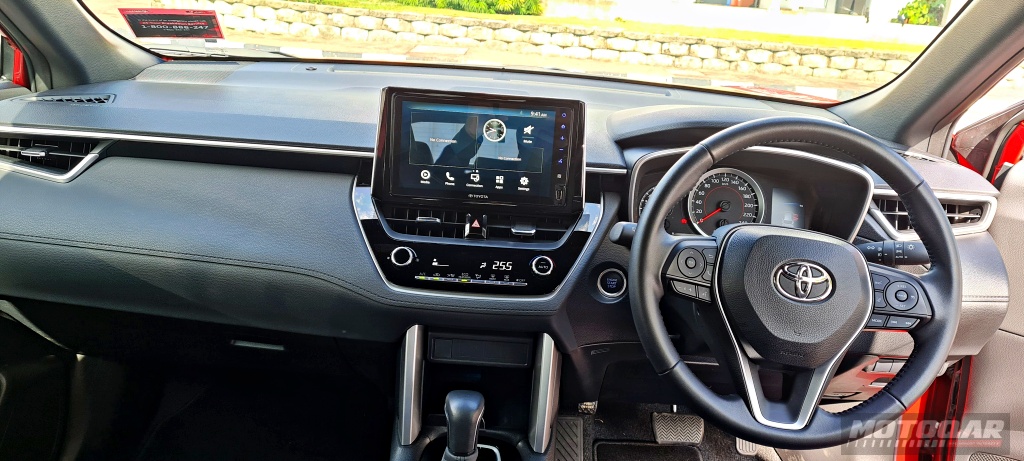- Tiada yang menarik pada bentangan papan pemuka Corolla Cross yang tampil ringkas kemudian dipadankan dengan kemasan krom agar tampil elegan. Namun, penggunaan plastik keras mungkin ada kebaikan bagi tempoh jangka panjang terutamanya sinaran UV.