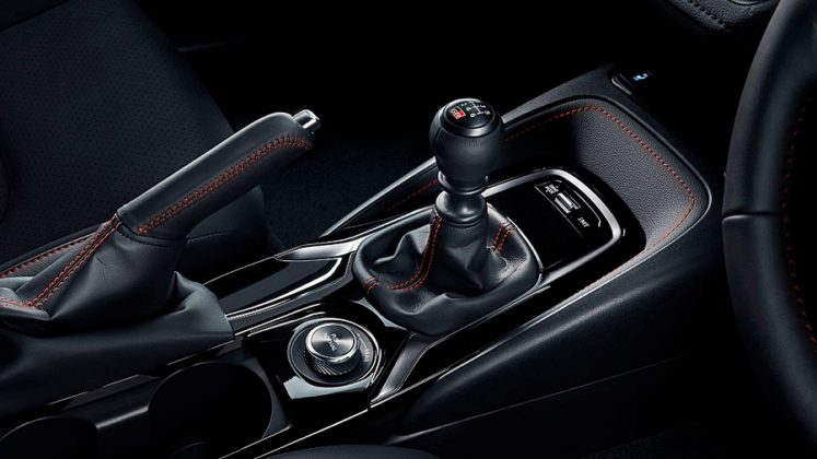Seperti semua model GR dan GR Sport, tema hitam disertakan dengan aksen merah di sekeliling kabin.