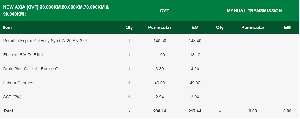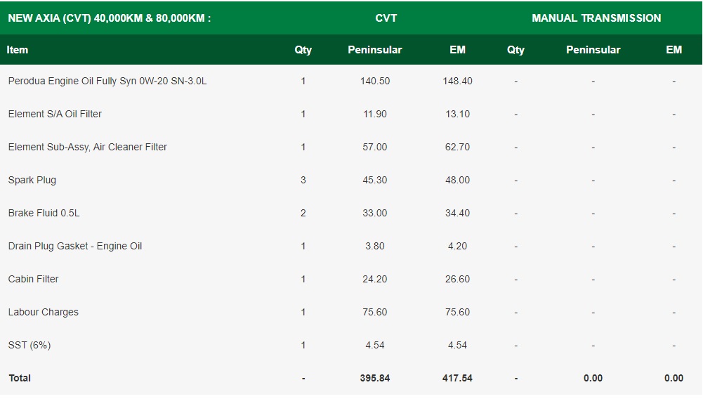 Pada perbatuan ini, kos servis Axia adalah lebih rendah berbanding servis kedua yang melibatkan pertukaran komponen: