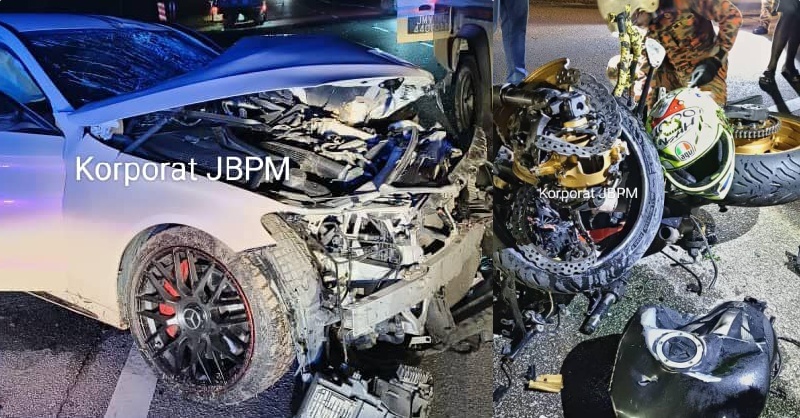 Rider motosikal berkuasa tinggi maut selepas terlibat dalam satu kemalangan dengan sebuah Mercedes-Benz di KM133 Jalan Johor Bahru-Seremban (Chaah), pada Ahad.