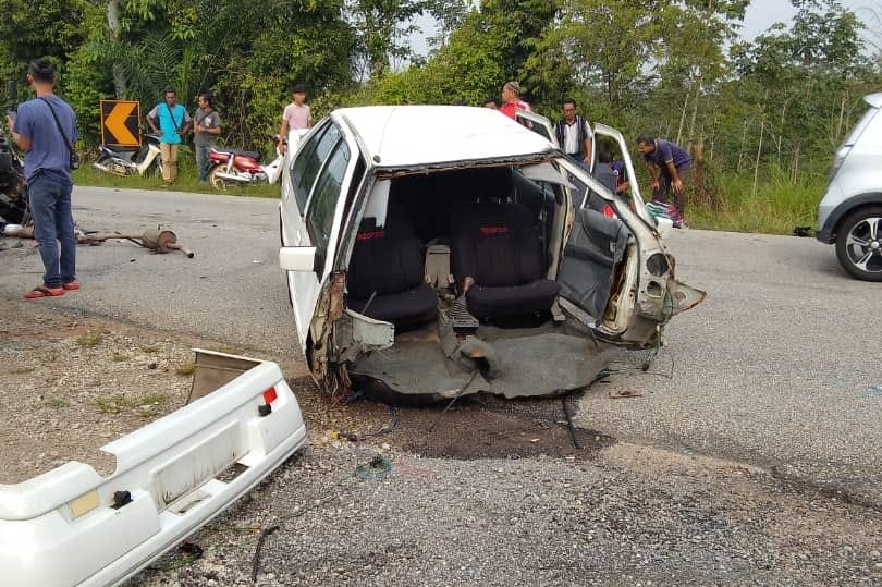 “Apabila sampai di tempat kejadian, kereta mangsa hilang kawalan lalu masuk ke laluan Toyota Hilux dalam kedudukan melintang.