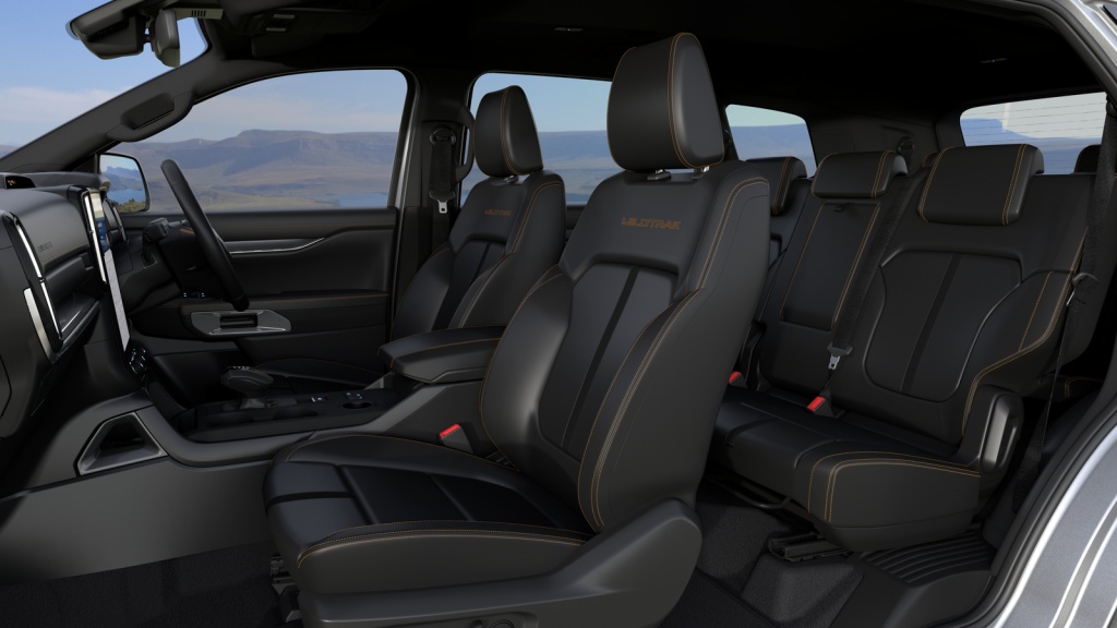 - Dalam kabin direka semula menerusi kerusi balutan kulit sintetik hitam dengan jahitan benang jingga dan logo ‘WildTrak’ pada penyandar kerusi depan serta lampu ambien pada papan pemuka.