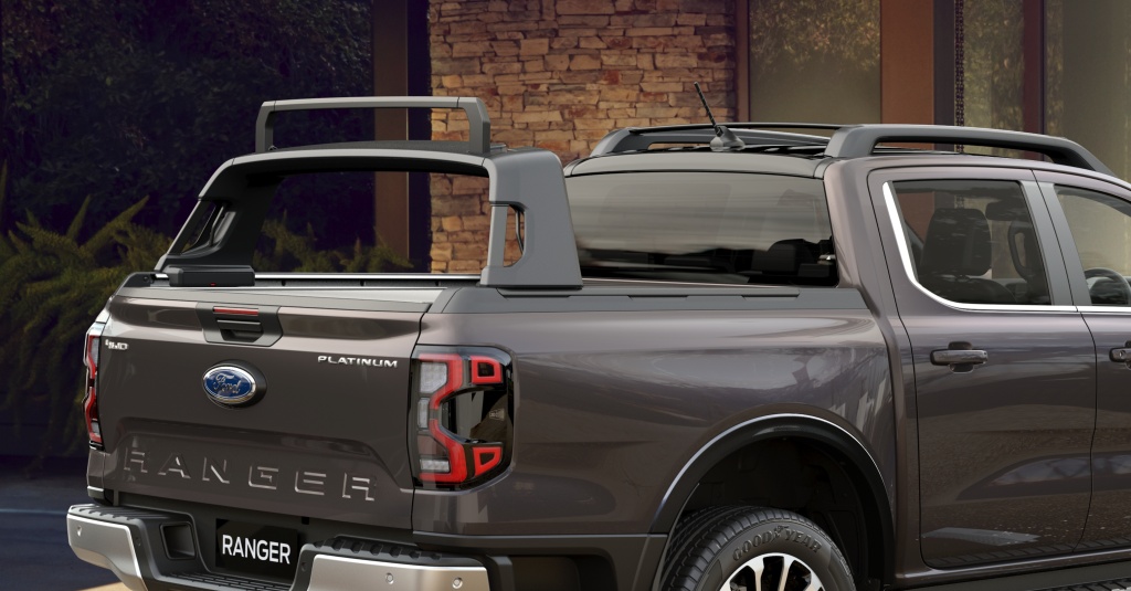 - Naiktaraf luaran yang ditawarkan termasuklah gril unik, rim aloi 20-inci (pertama dalam Ranger), lencana hud Platinum, kemasan krom sutera, lampu depan LED Matrix, pintu pelantar tabung gas, sistem rak fleksibel, penutup roller berkuasa dan warna baharu Equinox Bronze.