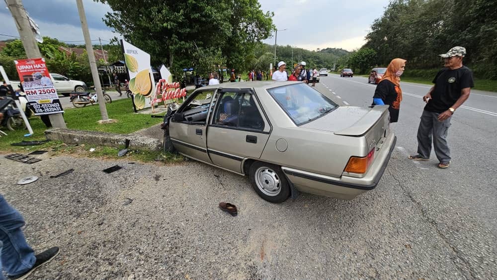 Pemandu kereta berusia 65 tahun dan penumpang wanita berusia 42 tahun mengalami luka pada bahagian lutut dan kepala.