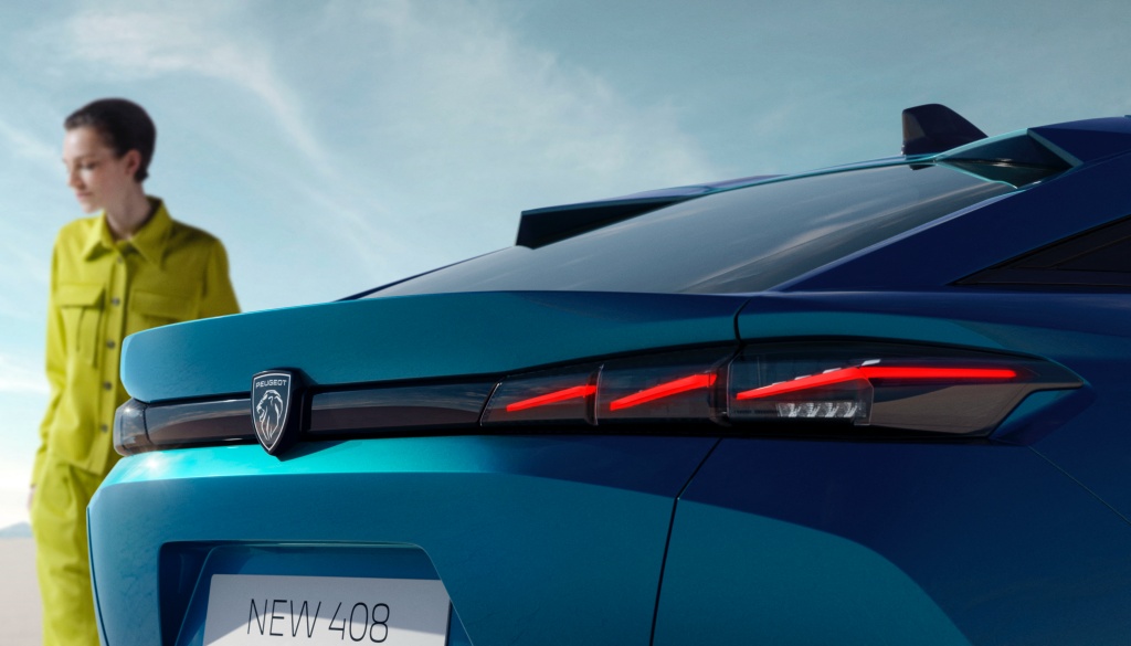 Engsel berlekuk pada Peugeot 408 digabungkan dengan rekaan telinga kucing (Cat Ears) untuk menghasilkan koridor aerodinamik yang optimum pada lid spoiler.