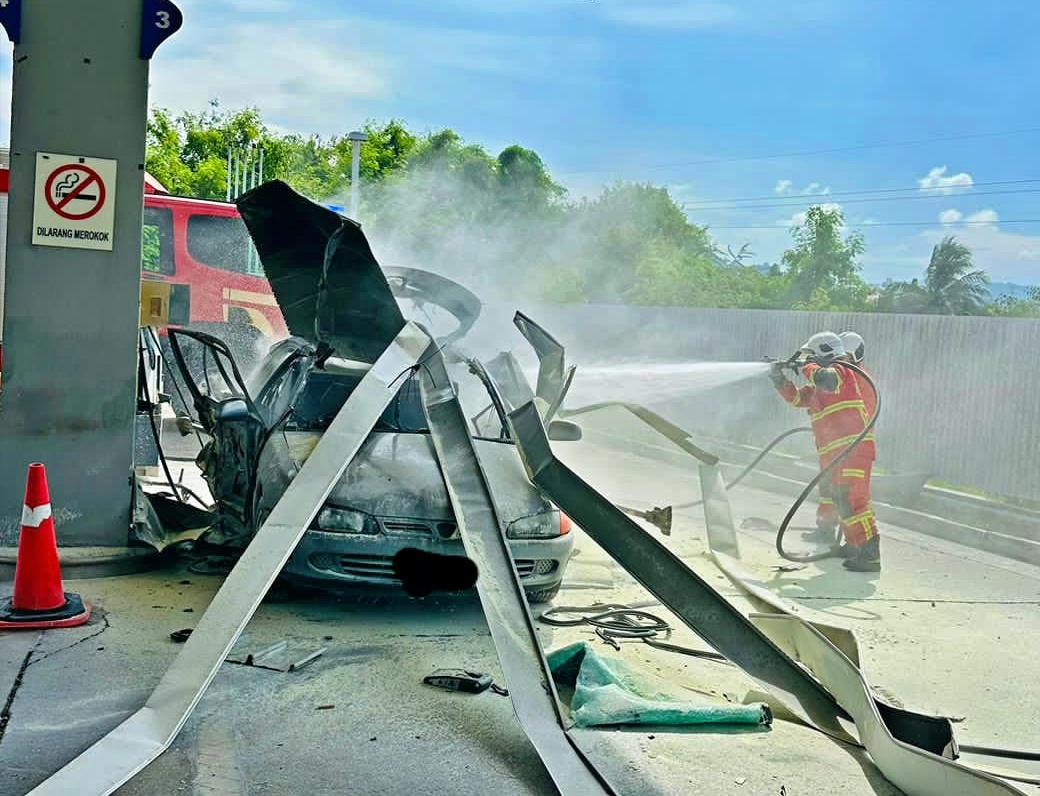 Proton Iswara Aeroback terbakar 50 peratus, meletup tengah isi minyak