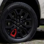 - Roda 20 inci dengan cat Hitam Asfalt matte dan sisipan roda Merah Race