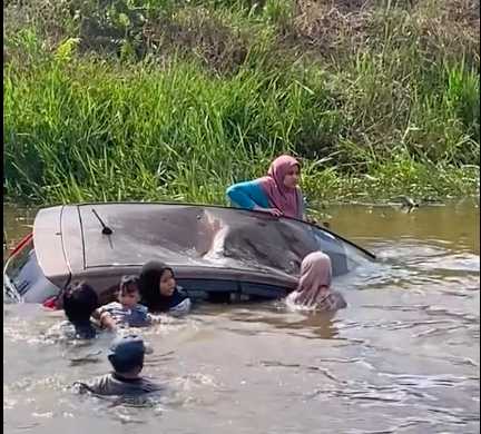 Terdahulu tular video berdurasi 35 saat di media sosial memaparkan tindakan berani dua lelaki berenang menyelamatkan keenam-enam mangsa kemalangan sebelum kereta terbabit tenggelam.