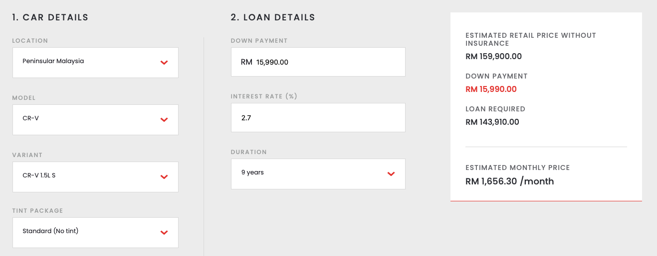 Berminat memiliki SUV segmen-C ini?..di bawah kami kongsikan kiraan kasar ansuran bulanan CR-V yang didapati dari laman web Honda Malaysia.