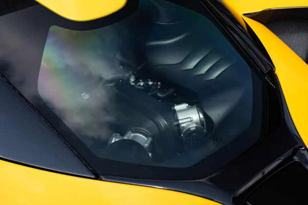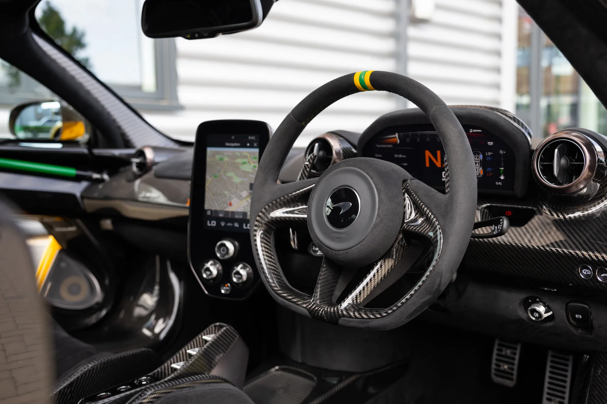 Kuasa menghentikan supercar itu diserahkan kepada brek seramik karbon Brembo dengan tayar Pirelli P-Zero Trofeo R. Ia dilengkapi dengan tiga paip ekzos titanium dan suspensi McLaren’s hydraulic RaceActive Chassis Control II (RCC II) dengan kawalan lengan double-wishbone.