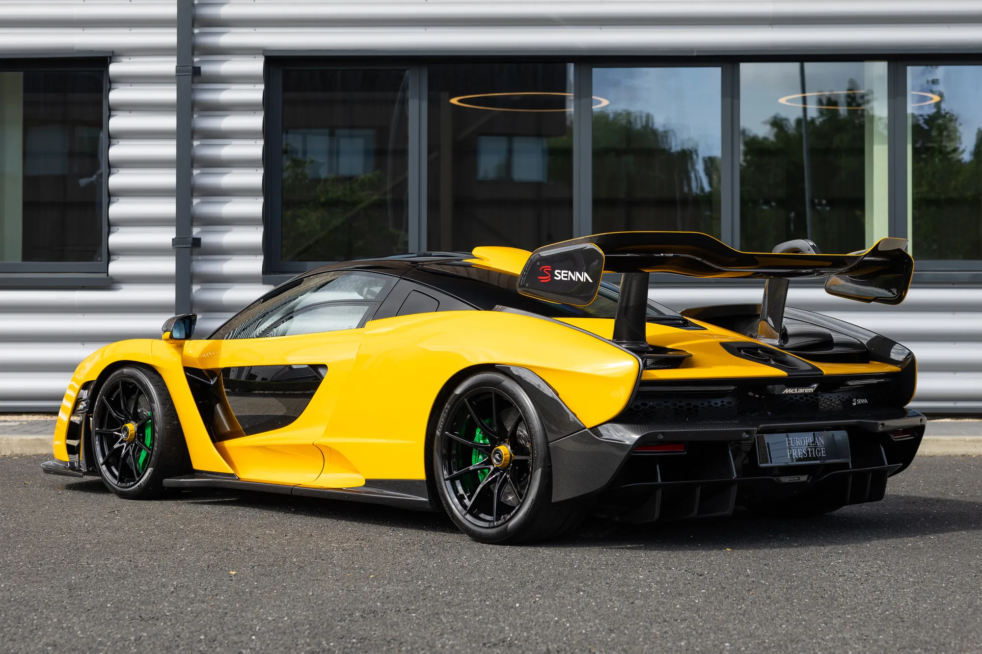 Ciri aerodinamik yang didatangkan pada Senna termasuklah spoiler belakang pelarasan elektronik yang juga berfungsi sebagai brek udara, elemen diffuser berganda, scoop bumbung F1, intake depan dan sisi serta fender depan lebih besar.