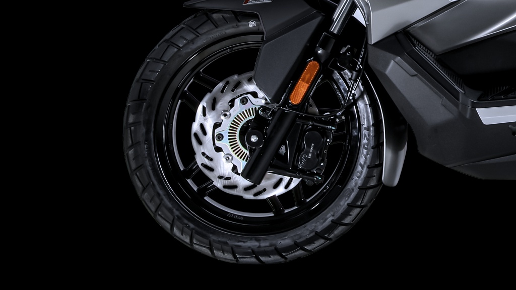 Husky ADV 300 dilengkapi dengan tayar bersaiz 120/70 R15 di depan dan 140/70 R14 di belakang.