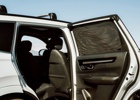 Penutup yang direka khas untuk tingkap belakang bersama bidai boleh tarik di belakang kerusi depan meningkatkan privasi untuk suasana tenang dan tidur yang selesa.
