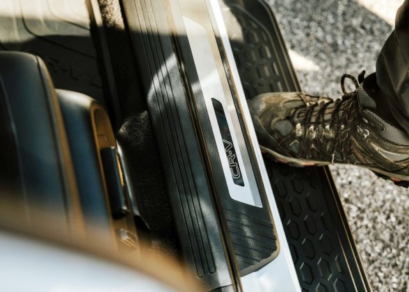 Di bahagian dalam, alas lantai getah yang direka khas membantu mengekalkan kebersihan kabin selepas meneroka kawasan berlumpur.