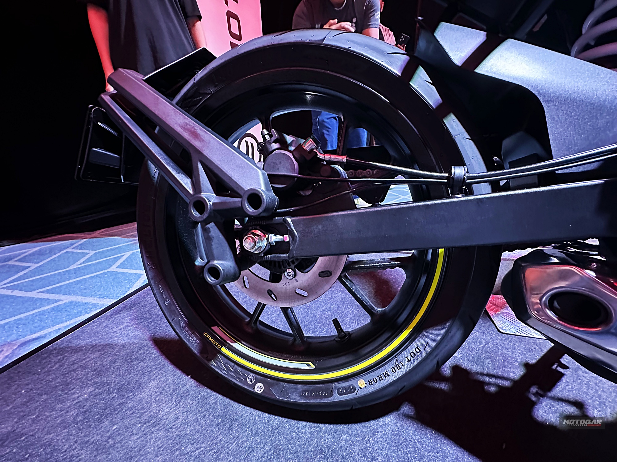 - Tayar hadapan pula bersaiz 110/70 R17 dan belakang 140/60 R17.