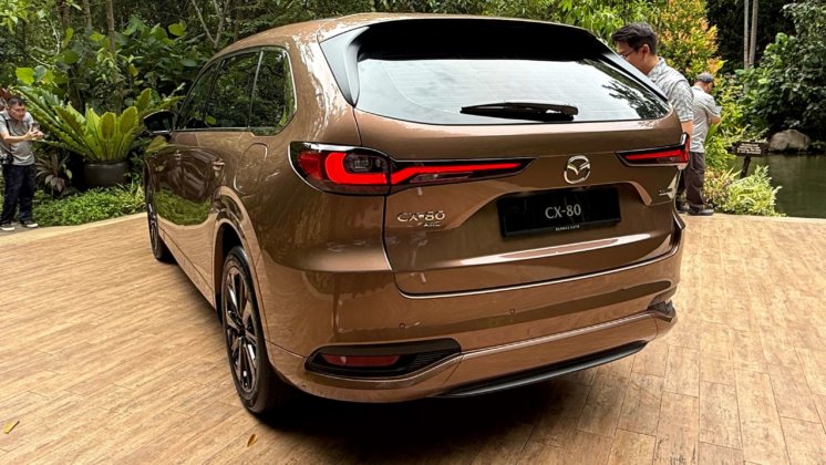 Dari sisi, CX-80 menampilkan garis bumbung yang panjang dan kemas, manakala belakangnya dihiasi lampu LED minimalis yang menyerlahkan lebar badannya.