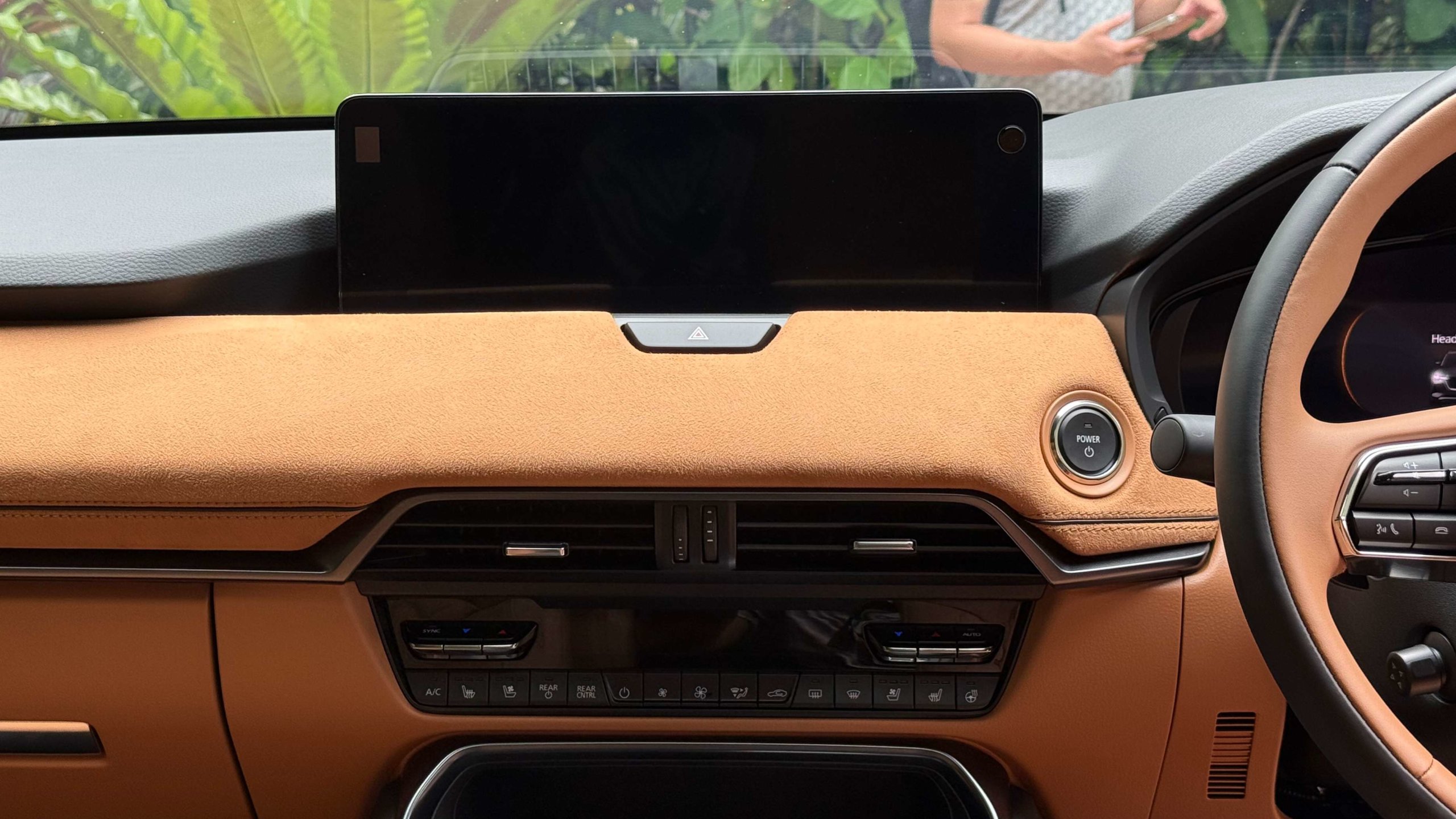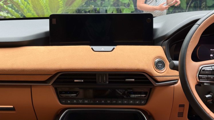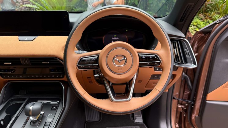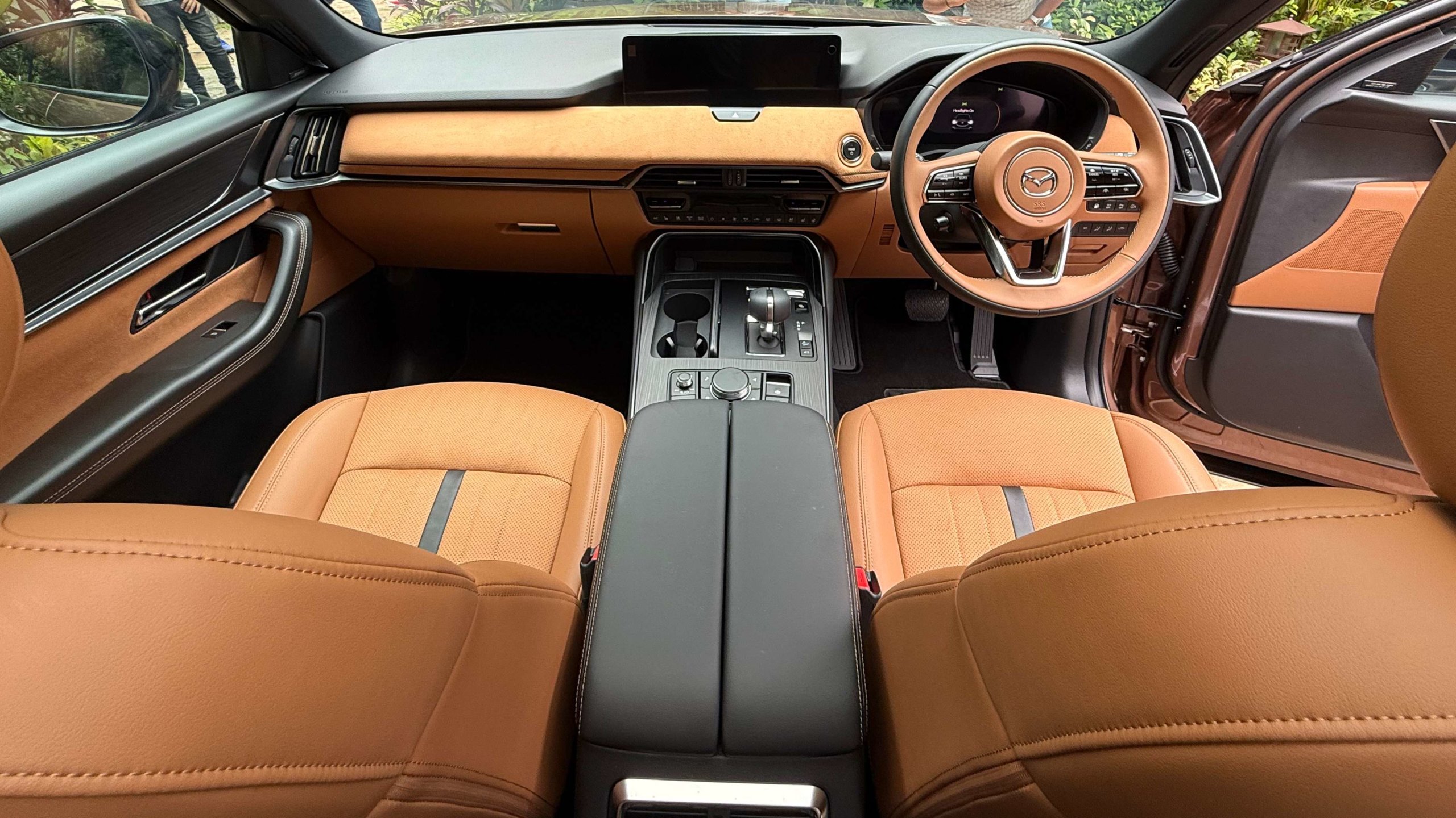 Masuk ke dalam, CX-80 terus menyerlah dengan ruang dalaman luas untuk tujuh penumpang. Reka bentuk papan pemuka lebar, konsol tengah kukuh dan kemasan pintu yang menyatu memberi aura premium. Mazda menggunakan bahan dalaman mewah seperti kulit, kayu asli dan fabrik tenunan Jepun.