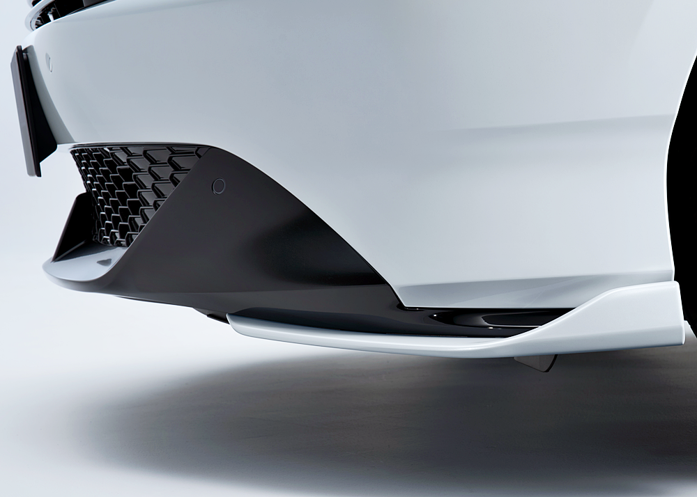 - Skirt bawah hadapan dengan reka bentuk seakan-akan canard, menampilkan gabungan warna badan dan warna hitam untuk rupa yang lebih lebar dan agresif.
