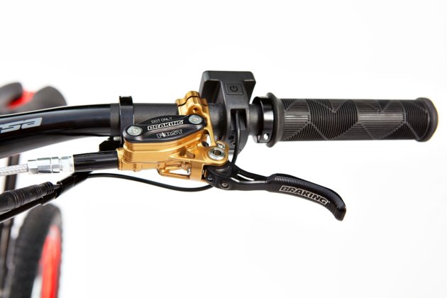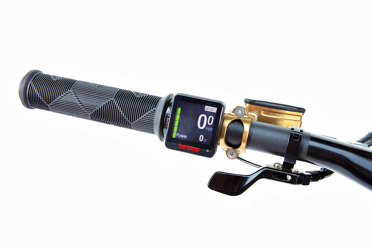 Paparan digital kecil pada hendal memberikan maklumat penting seperti tahap bantuan, status cas bateri, dan kelajuan. Petunjuk tahap cas akan berkelip apabila paras bateri jatuh di bawah 10%.