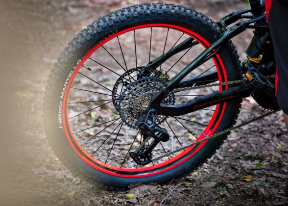 Roda dan Tayar: Menggunakan roda tubeless-ready Mavic khusus untuk e-basikal dan tayar off-road Vittoria untuk e-basikal.