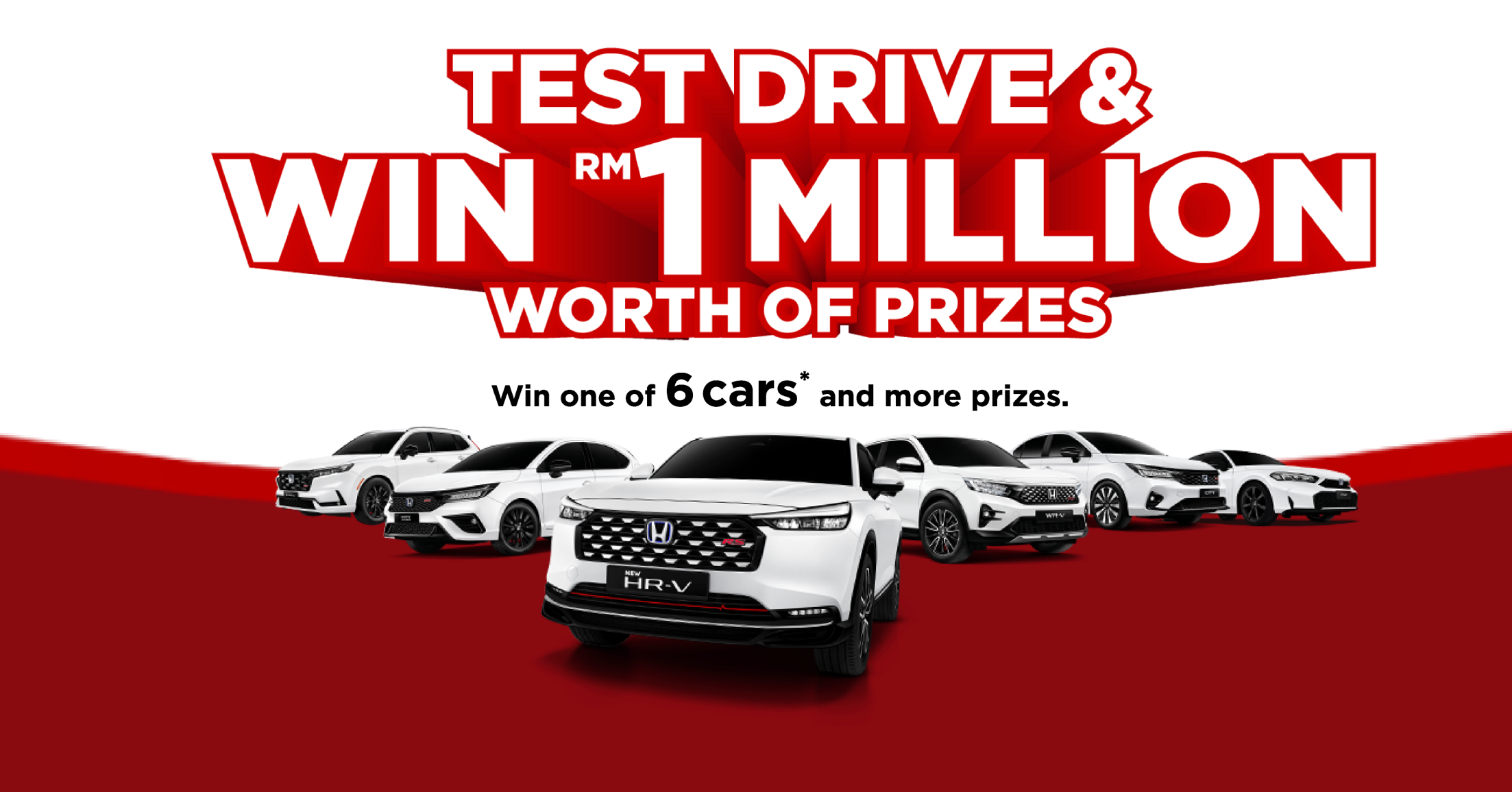 Setiap kali anda memandu uji atau mendaftar mana-mana model Honda di pengedar sah sepanjang tempoh kempen, anda berpeluang mendapat sekurang-kurangnya satu penyertaan cabutan bertuah.