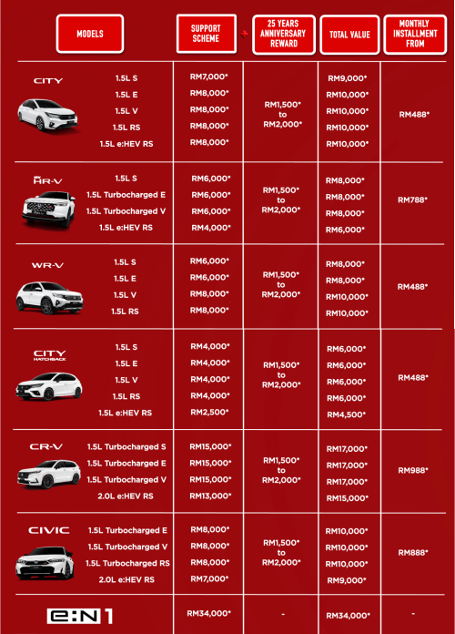 Sempena ulang tahun ke-25, Honda Malaysia menawarkan rebat sehingga RM34,000 bagi model 2025.