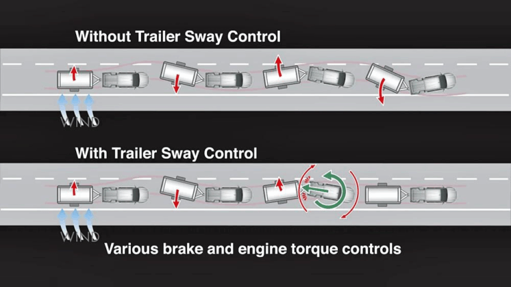 - Kawalan Bantuan Mula Mendaki (HAC), Isyarat Berhenti Kecemasan (ESS – Emergency Stop Signal) dan Kawalan Olengan Treler (TSC).