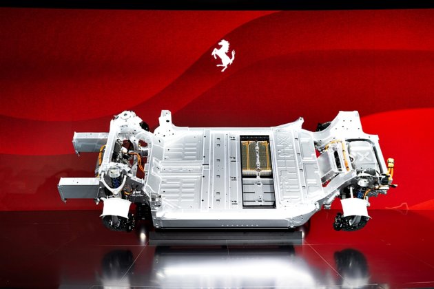 Ferrari Elettrica menggunakan pek bateri berkapasiti 100 kilowatt-jam (kWj) dengan seni bina 900 volt.