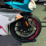 Selain itu, ia dipadankan dengan tayar hadapan 110/70-R17 dan tayar belakang 140/60-R17, kedua-duanya jenis tanpa tiub, bersama rim aloi aluminium 17 inci yang ringan dan kukuh.
