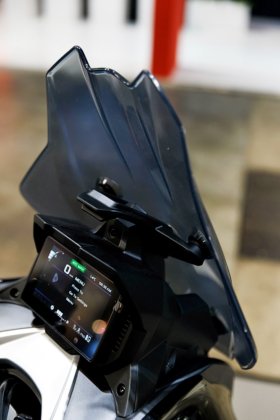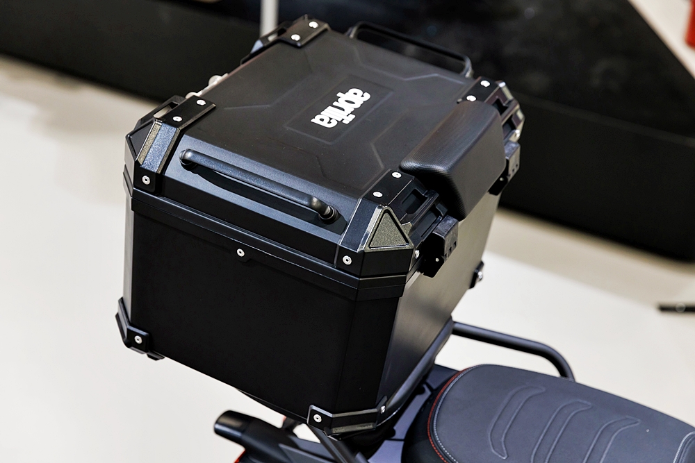 Praktikaliti Harian: Sistem tanpa kunci (keyless) standard, fungsi Bike Finder, ruang bawah pelana dengan satu topi keledar penuh bersama barangan kecil lain dan soket pengecasan USB-C.