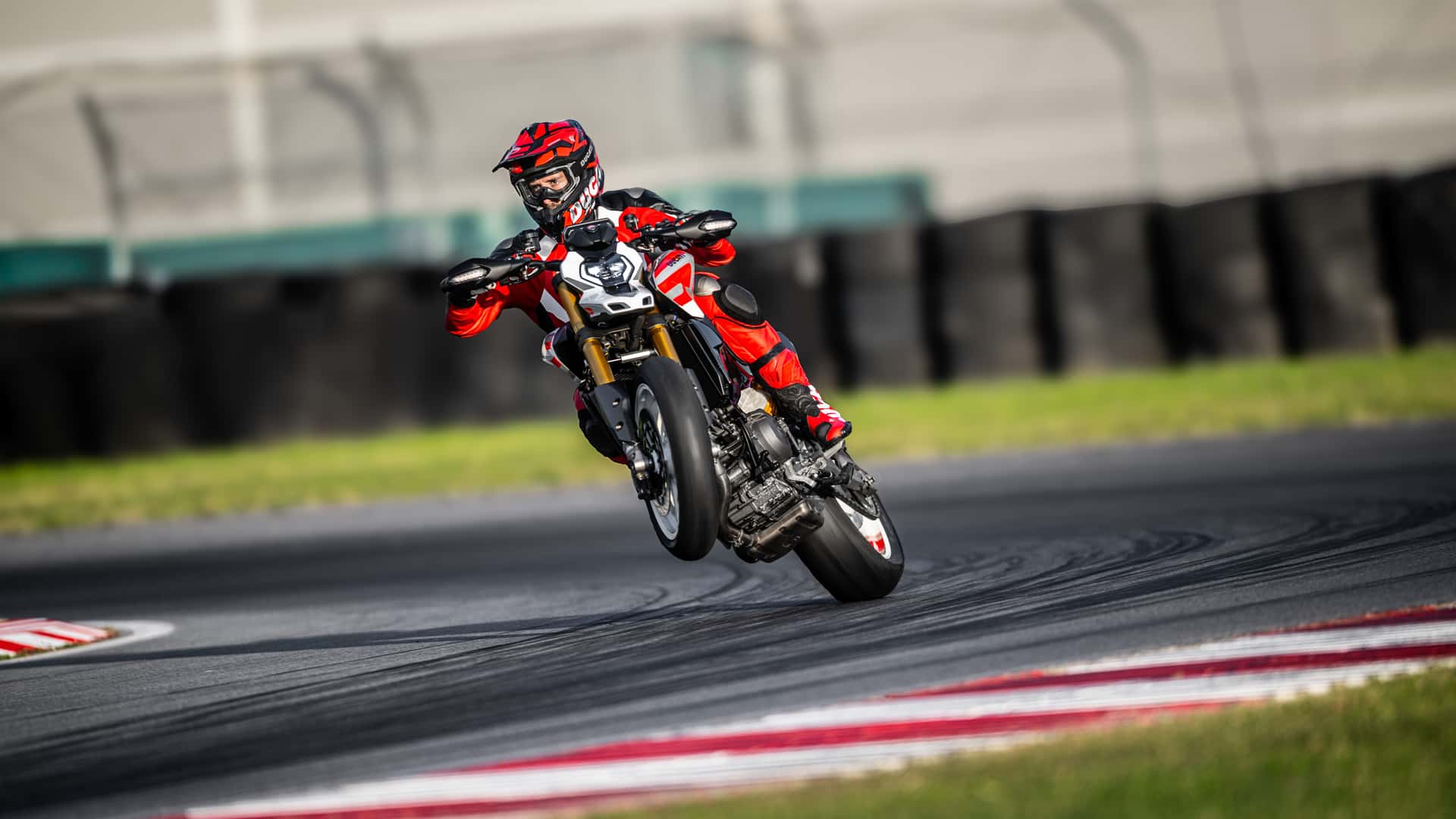 Secara standard, Hypermotard mendapat tetapan suspensi fork Kayaba 46 mm, brek Brembo M4.32 Monoblock dan rim aloi enam jejari.