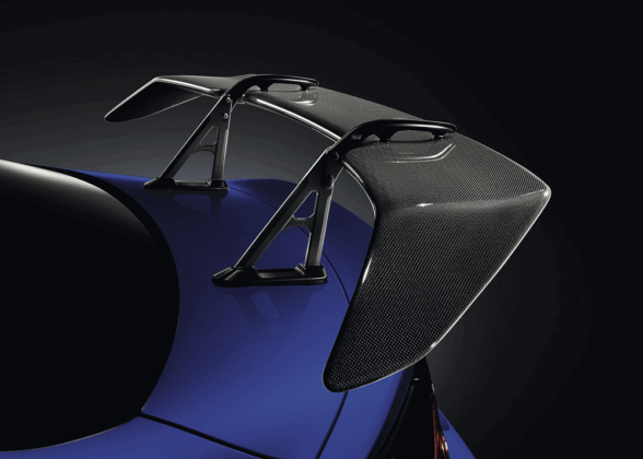- Spoiler belakang karbon kering (dry carbon rear spoiler) STI (khusus untuk gred TYPE RA dengan spoiler belakang).