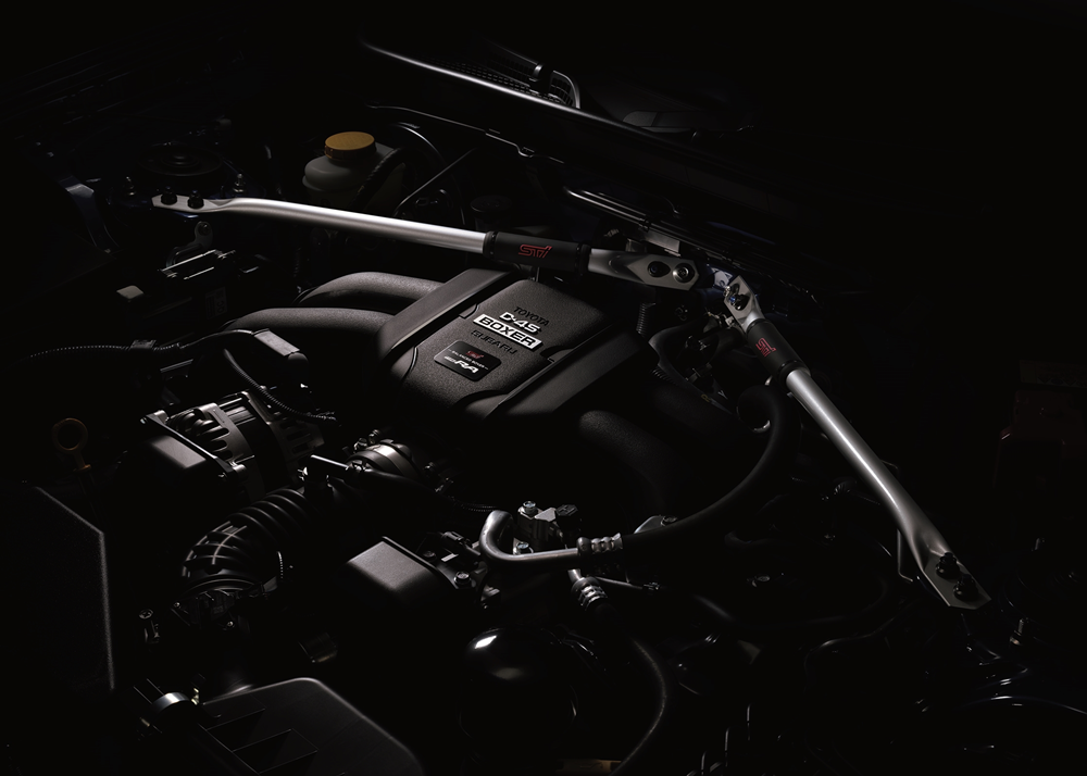 - Enjin yang diseimbangkan (balanced engine) meliputi omboh, rod penyambung, aci engkol, serta plat khas dengan logo STI & TYPE RA.